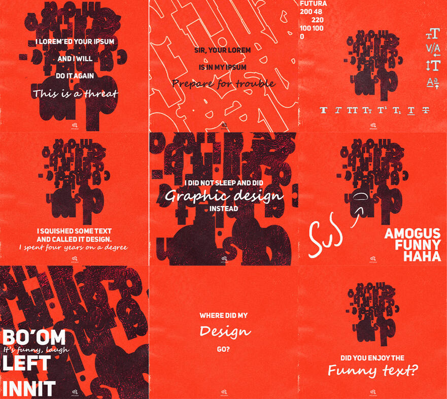 Due to the experience gained from the above experimentation , I was able to create "I lorem'd your ipsum", a cohesive carousel of design related comedic posts created for instagram.